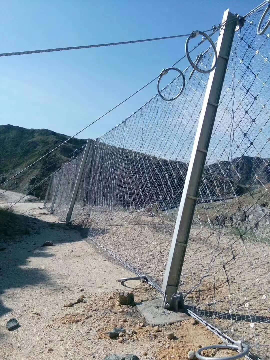 堤坡邊坡防護(hù)網(wǎng)是由鋼絲繩網(wǎng)、高強(qiáng)度鐵絲格柵網(wǎng)、錨桿、工字鋼柱、上下拉錨繩、消能環(huán)、底座及上下支撐繩等部件構(gòu)成。系統(tǒng)由鋼柱和鋼繩網(wǎng)聯(lián)結(jié)組合構(gòu)成一個整體,被動邊坡防護(hù)網(wǎng)是由鋼絲繩網(wǎng)、高強(qiáng)度鐵絲格柵網(wǎng)、錨桿、工字鋼柱、上下拉錨繩、消能環(huán)、底座及上下支撐繩等部件構(gòu)成。系統(tǒng)由鋼柱和鋼繩網(wǎng)聯(lián)結(jié)組合構(gòu)成一個整體,對所防護(hù)的區(qū)域形成坡面防護(hù),從而阻止崩塌巖石的下墜,起到邊坡防護(hù)的作用。被動防護(hù)網(wǎng),即形式上與標(biāo)準(zhǔn)主動防護(hù)系統(tǒng)相似,但發(fā)揮的主要是被動防護(hù)作用。